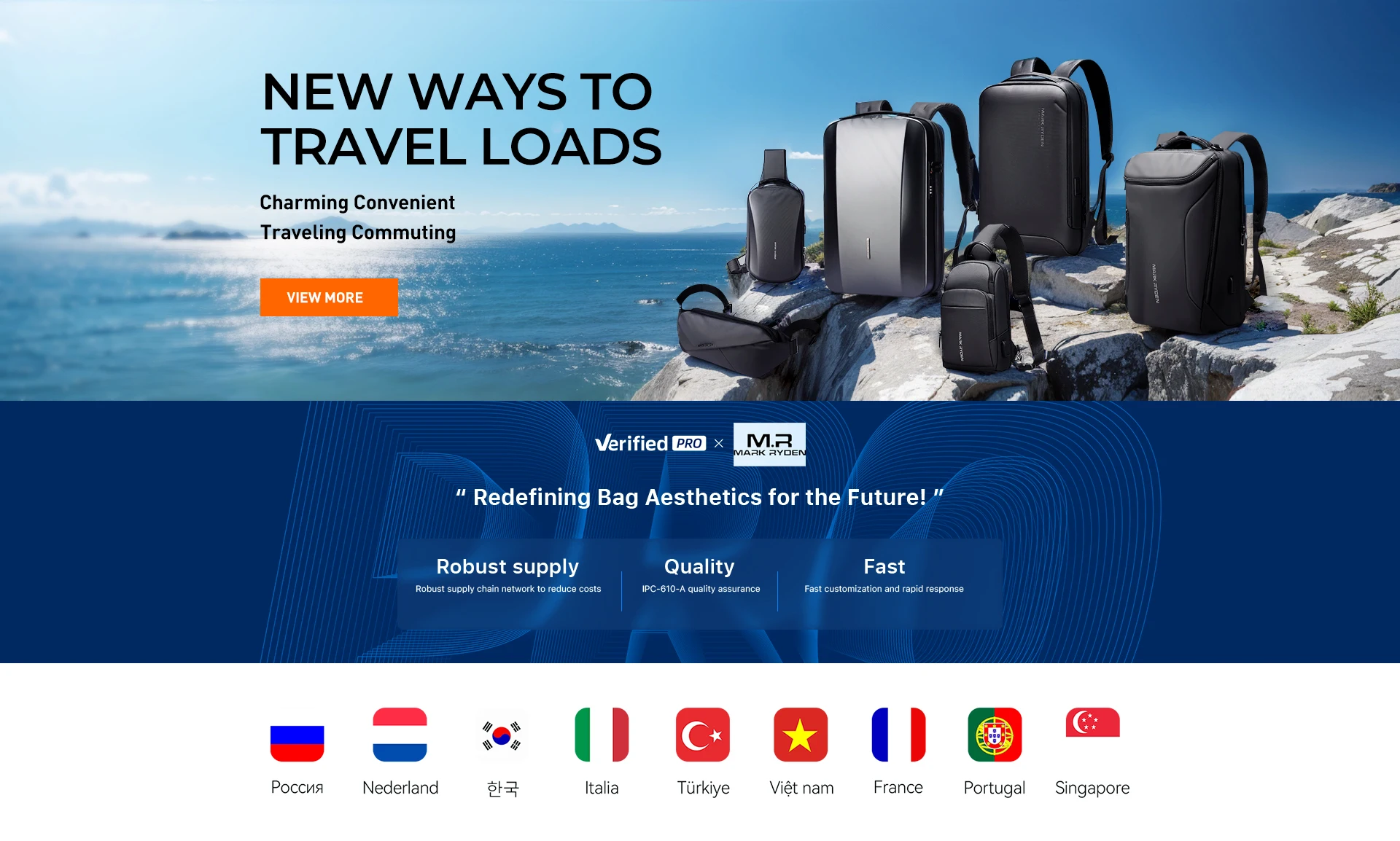 Productos principales:Mochila, bolso cruzado, bolso de pecho, bolso de viaje, carteras